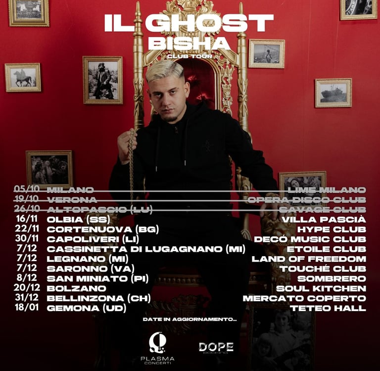 BISHA è uscito da un mese e Il Ghost lo porterà un po’ ovunque. Annunciate le prime date del Club Tour, calendario in aggiornamento.