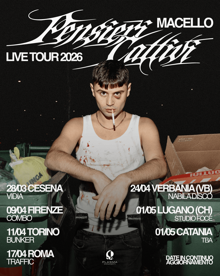 Le date del tour saranno comunicate e aggiornate sui canali ufficiali di Plasma Concerti, con tutte le informazioni su città, venue e biglietti.